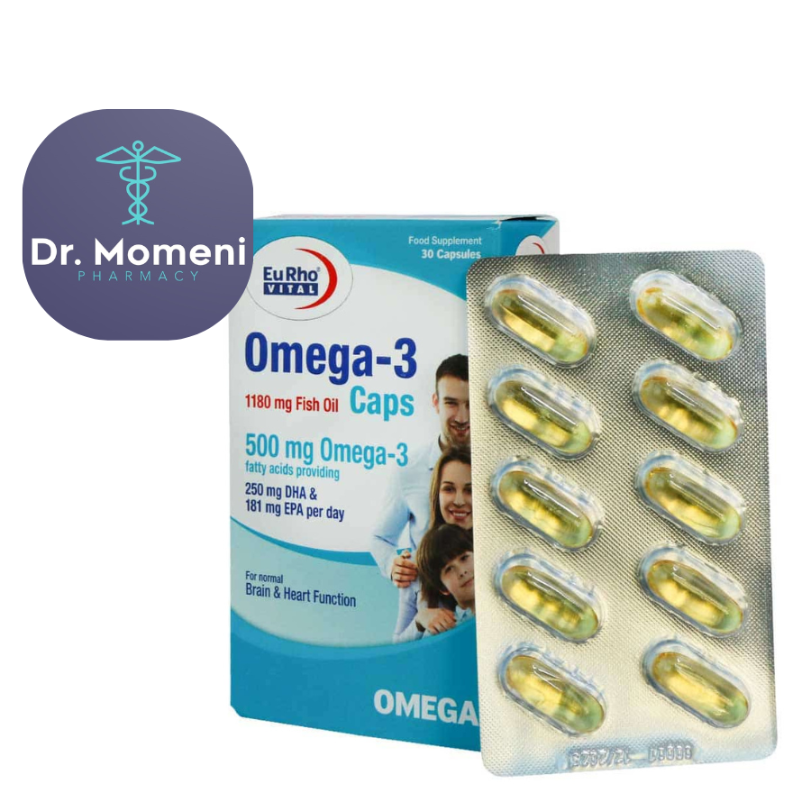 تکپسول امگا 3 یورویتال (EuRho Vital Omega-3) مکملی باکیفیت از روغن ماهی طبیعی است که سرشار از اسیدهای چرب EPA و DHA می‌باشد. این ترکیبات با اثرات ضدالتهابی و آنتی‌اکسیدانی خود به تقویت عملکرد قلب، مغز و بینایی کمک کرده و در کاهش تری‌گلیسرید، بهبود تمرکز ذهنی و سلامت مفاصل نقش دارند.