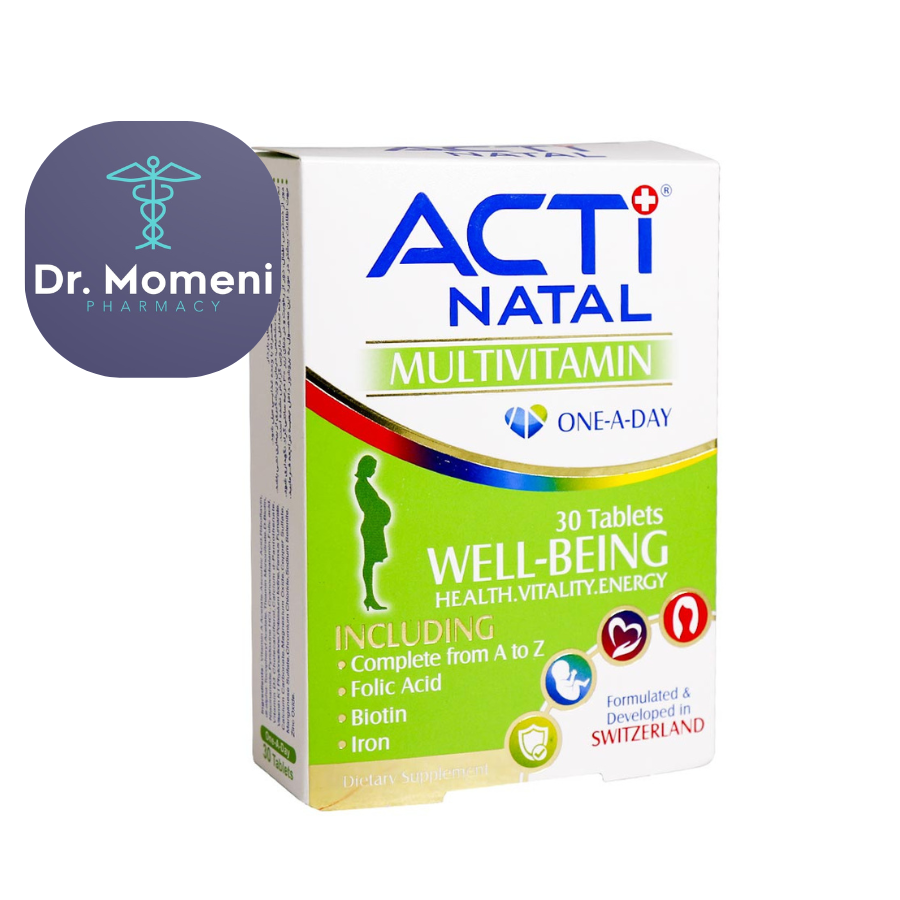 قرص اکتی ناتال (Acti Natal) مکملی ویژه برای دوران بارداری و شیردهی است که حاوی ترکیبی از فولیک اسید، آهن، ویتامین D، ید و زینک می‌باشد. این ترکیبات به رشد سالم جنین، تقویت سیستم ایمنی مادر و پیشگیری از کم‌خونی کمک می‌کنند.