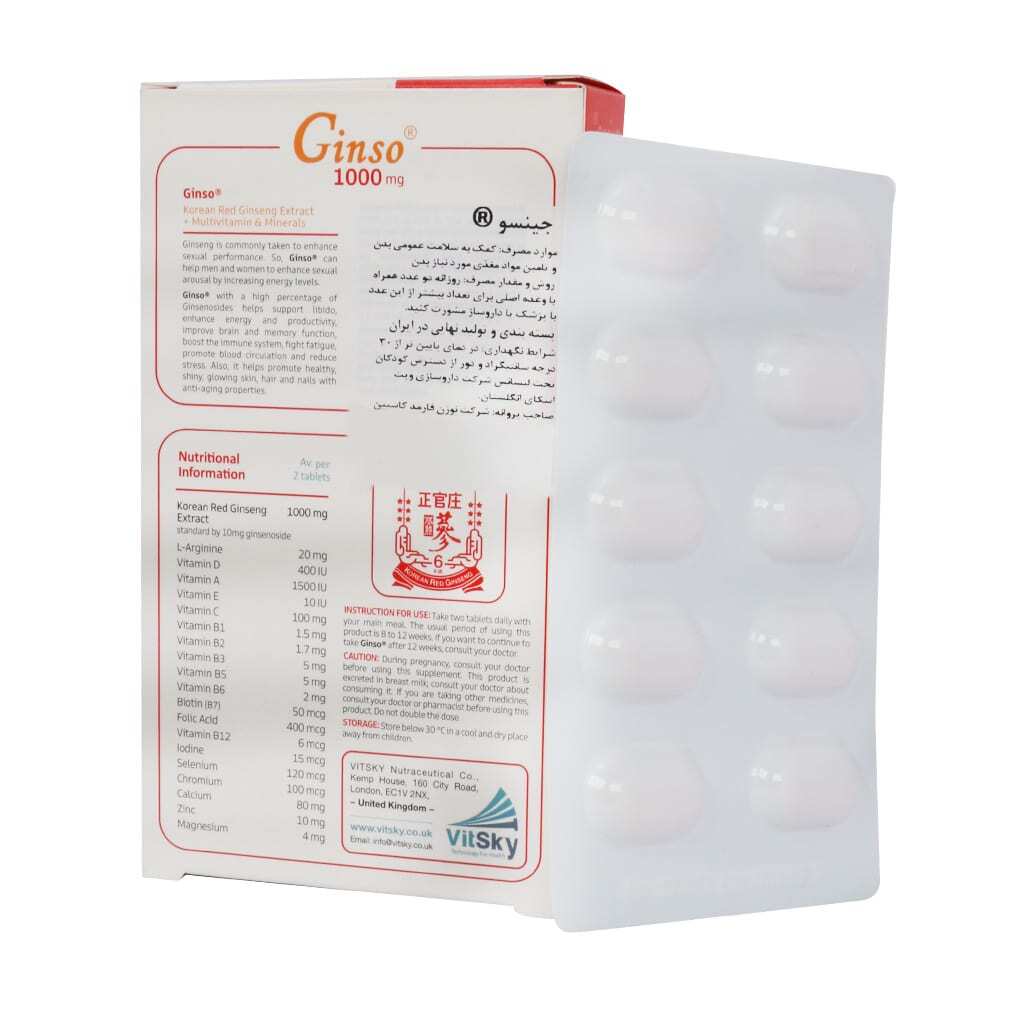 Ginso VitSky | قرص جینسو 100 میلیگرم ویتسکی | افزایش انرژی، تمرکز و تقویت قوای جنسی
